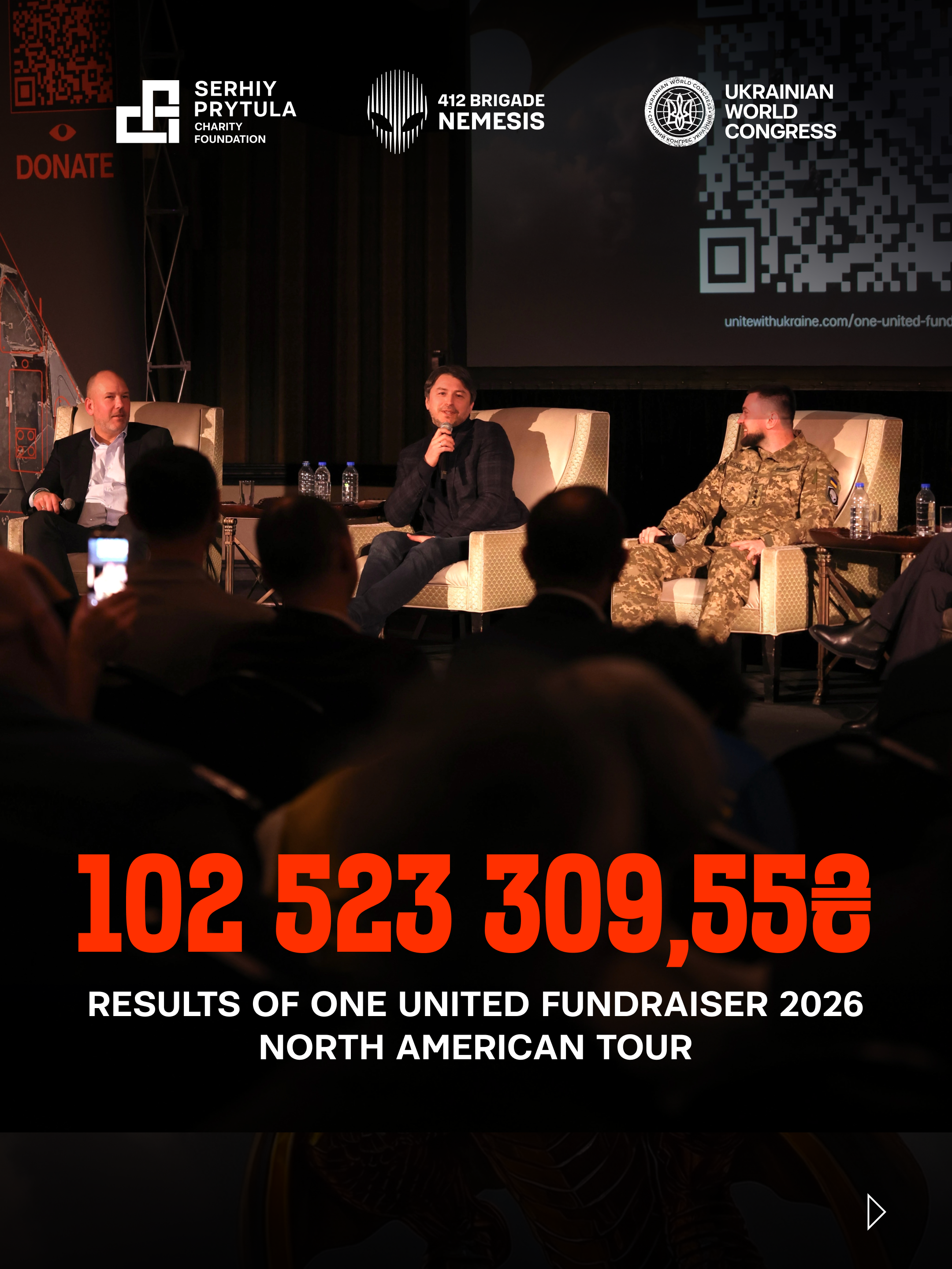 The Ukrainian World Congress and the Serhiy Prytula Charity Foundation are proud to announce the successful conclusion of the One United Fundraiser (Єдинозбір) 2026 North American Tour, which raised a total of 102,523,309.55 Ukrainian hryvnias (UAH) to support Ukraine’s frontline defenders and protect civilians and critical infrastructure from ongoing Shahed drone attacks.